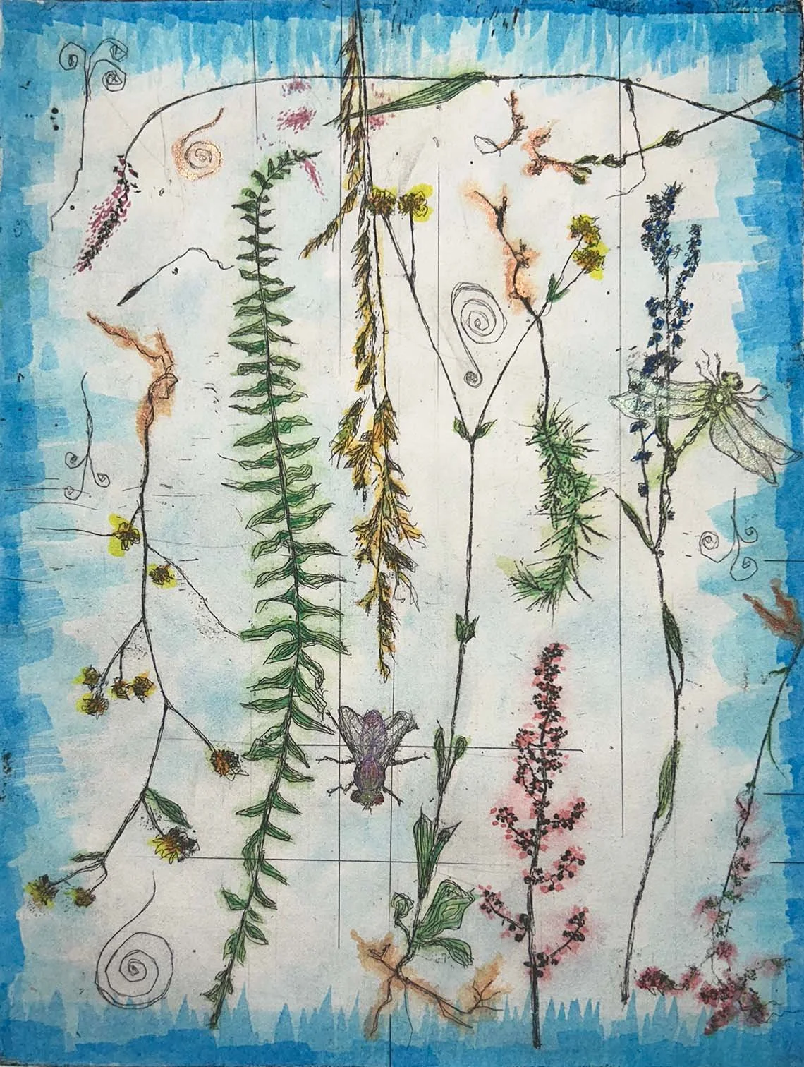 Drypoint, Sugar Lift, and Color Roll, 13”x16”