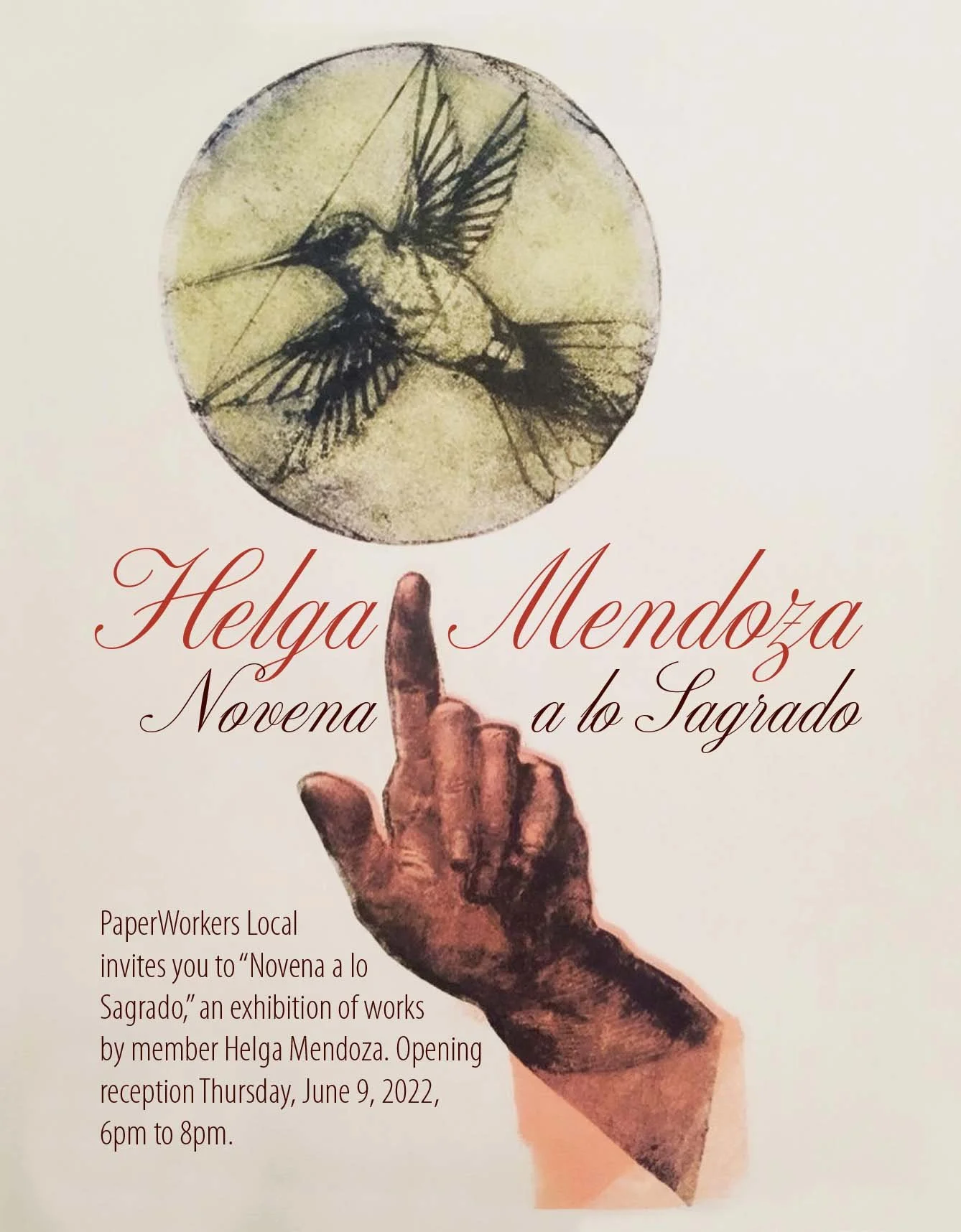 The opening reception will be held Thursday, June 9, 2022, from 6 pm to 8 pm at PaperWorkers Local. The show closes Saturday, July 30, 2022.