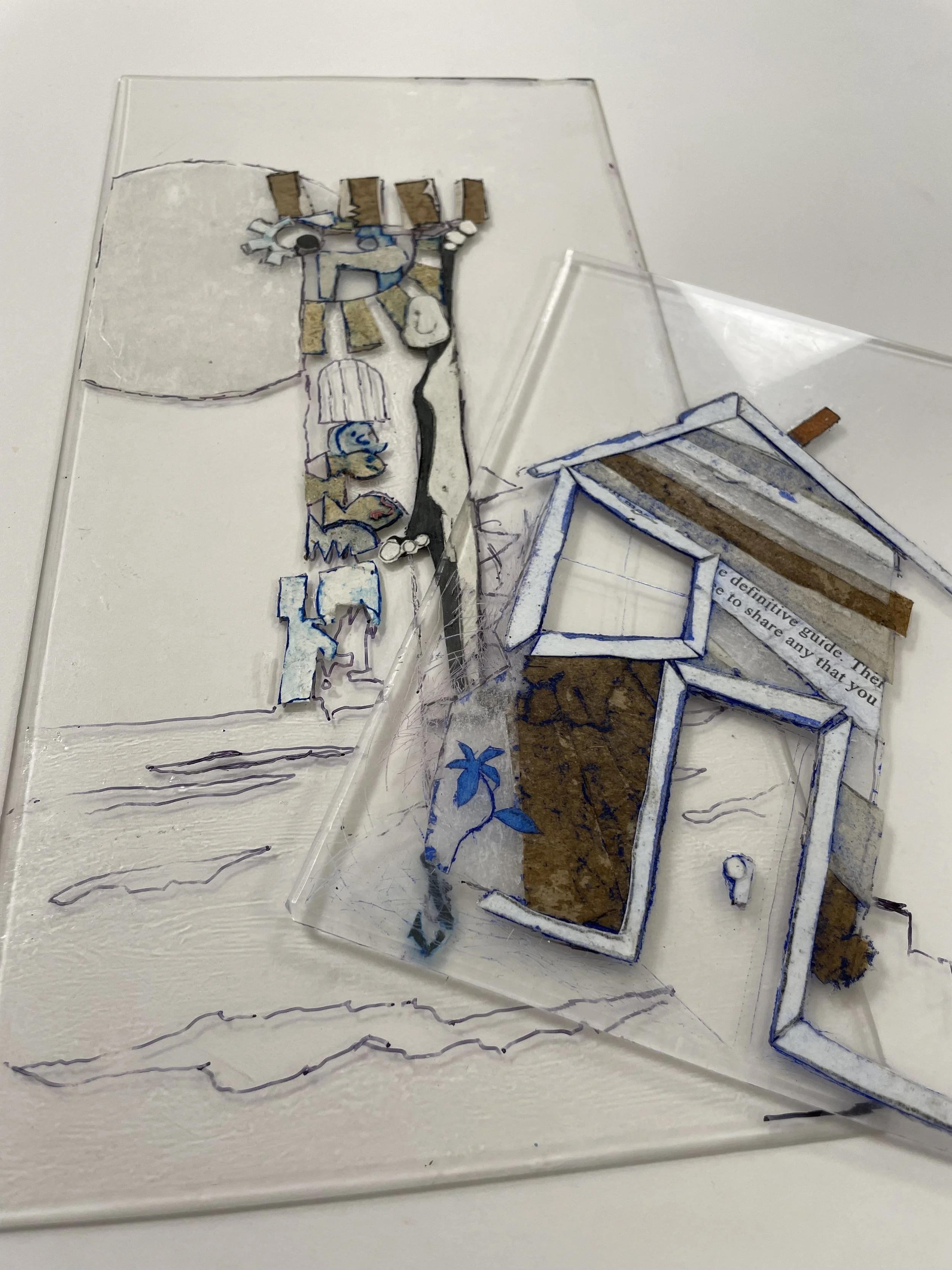 Printed marks and images aren’t just things – they are experiences – how can we create a correspondence that is complex and fulfilling for the viewer? What is collage – if I obscure or layer things – does that make the viewer want to see them more? Fixed image – Fluid Image – in the workshop we will explore layering, collage, folding and printing processes.