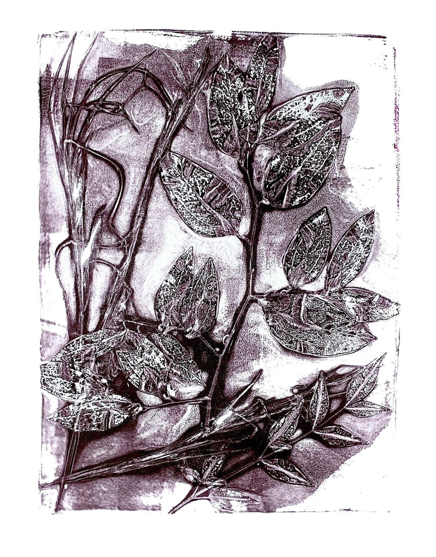 This one-hour introductory workshop covers printing plant materials using an etching press as well as without a press using Gelli plates. Each student will leave the class with their own unique artworks.