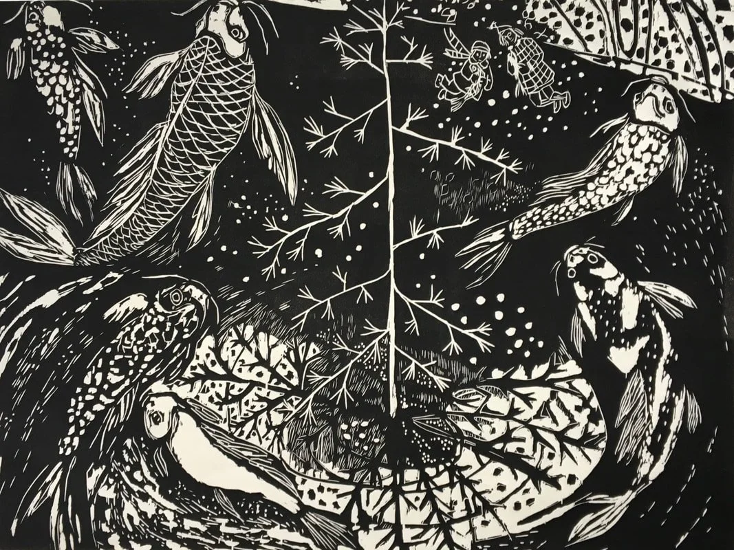 Join us for a 2-day printmaking workshop designed to explore the art of linocut reduction. Reduction relief printing is a method to achieve a multicolor print using one block. You'll learn to create a stunning two-layer lino relief print. Students will create a drawn image utilizing the white of the paper, a color of their choice and a black key layer. Using their drawing as a guide, they will alternate between printing a color and carving to show layers beneath.