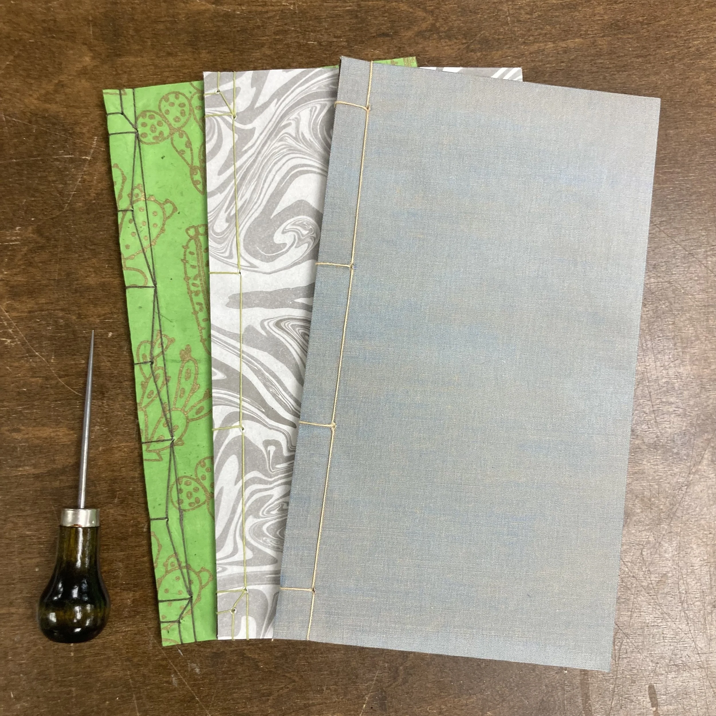 Details: Description: In this workshop, participants will learn several link-stitch book structures, including soft-cover link-stitch and two hard-cover variations. Ethiopian and Coptic are historic link-stitch techniques that date to around the 4th century AD. Participants will have the opportunity to use decorative paper, maps, and original prints to make personalized, modern versions of these ancient structures.